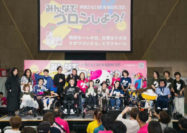 6/1に開催した「世界ALSデーin NAGOYA みんなでゴロンしよう!」では、Tシャツやレジャーシートの売上や、みなさんからの寄付で370,000円が集まりました。当事者の方がおでかけをするための支援金や、治療・研究